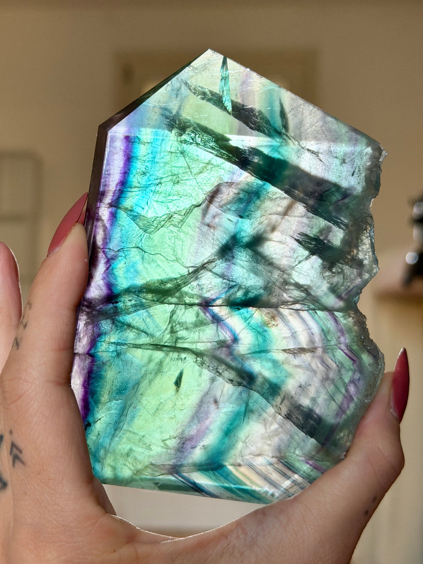 La fluorite candy favorisce la chiarezza mentale, aiuta a organizzare i pensieri e stimola la concentrazione. Porta leggerezza emotiva, calma interiore e dolcezza, rendendola ideale per chi ha bisogno di equilibrio e ispirazione nelle proprie giornate.